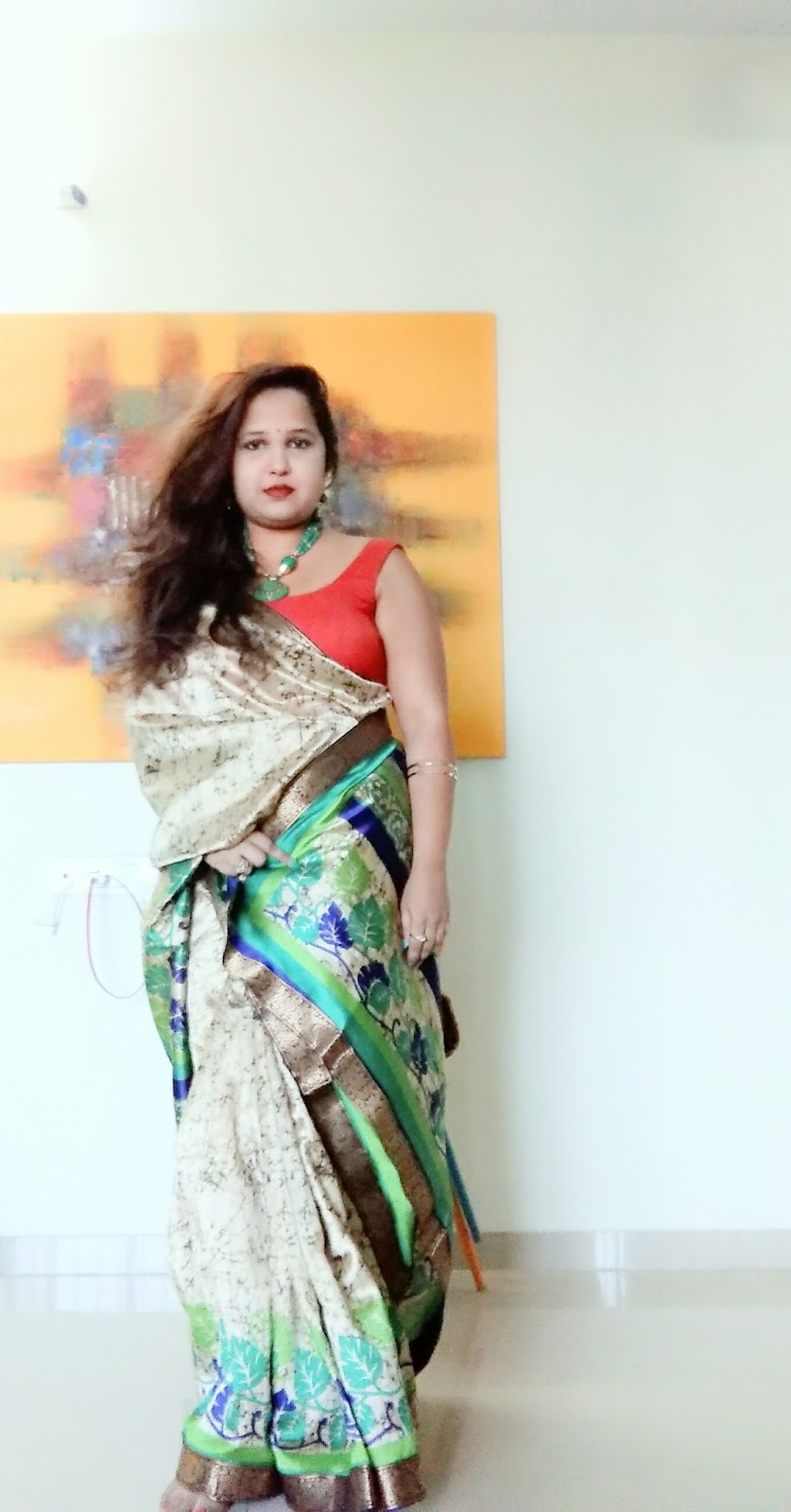 I picked another blouse and it fit ! (Thank God ! ) though it was little tight ( the blouse used to be lose I started draping the saree and she just refused to be my friend a silk batique I was hoping she would hide the flab which she usually does but today she was supporting my worst enemy weight. The waist refused to hide and the ass just seemed to grow into a entity of its own.